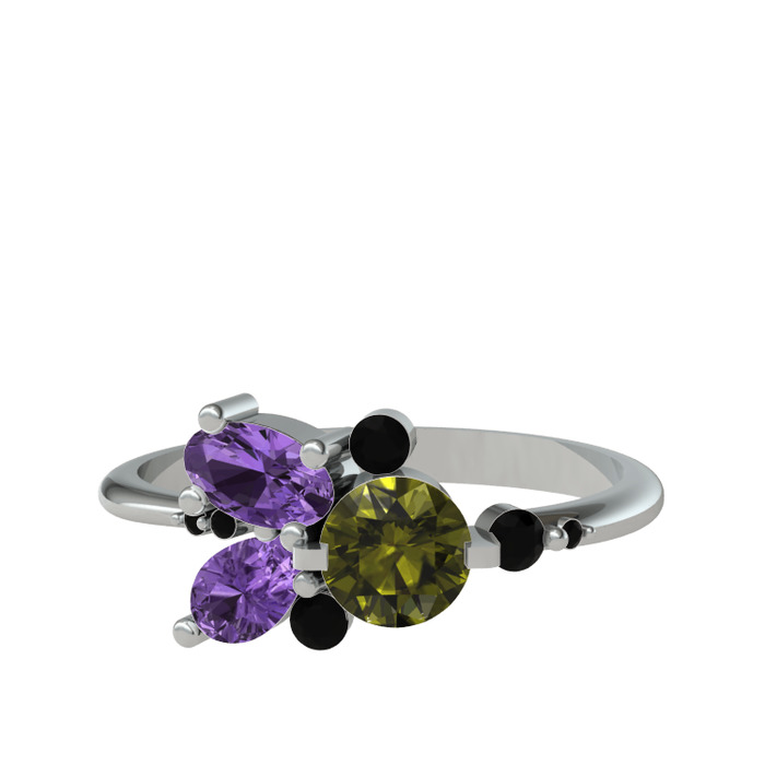 Peridot, ametist ve siyah zirkon 925 ayar gümüş yüzük