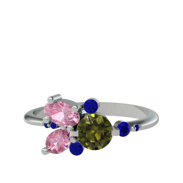 Peridot, pembe kuvars ve lab safir 8 ayar beyaz altın yüzük