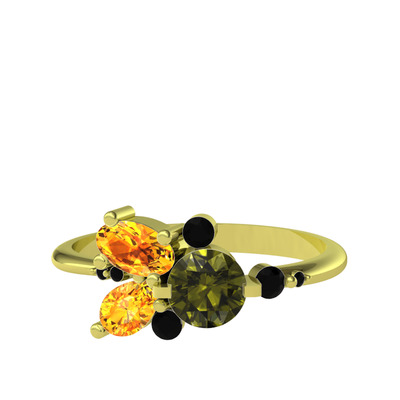 Peridot, sitrin ve siyah zirkon 18 ayar altın yüzük