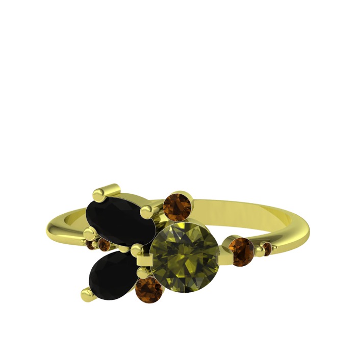 Peridot, siyah zirkon ve dumanlı kuvars 925 ayar altın kaplama gümüş yüzük