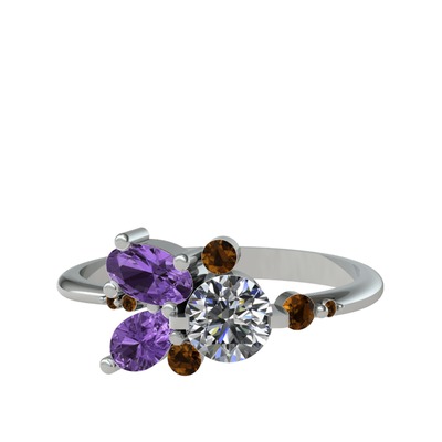 Pırlanta, ametist ve dumanlı kuvars 8 ayar beyaz altın yüzük (0.5 karat)