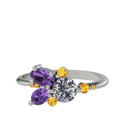 Pırlanta, ametist ve sitrin 8 ayar beyaz altın yüzük (0.5 karat)
