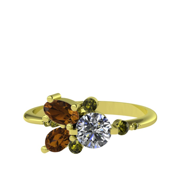 Pırlanta, dumanlı kuvars ve peridot 8 ayar altın yüzük (0.5 karat)