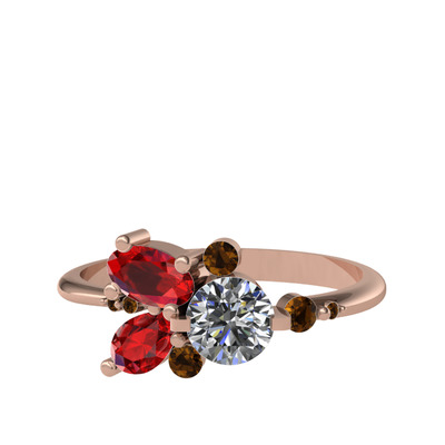 Pırlanta, garnet ve dumanlı kuvars 18 ayar rose altın yüzük (0.5 karat)