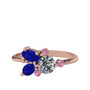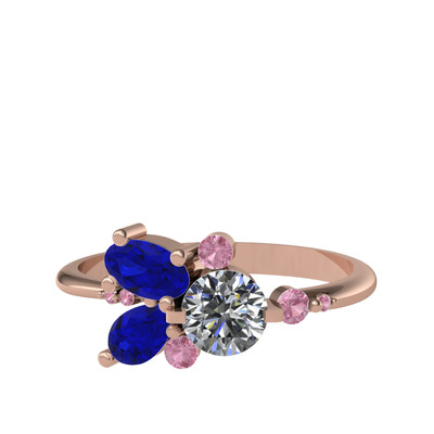 Pırlanta, lab safir ve pembe kuvars 18 ayar rose altın yüzük (0.5 karat)