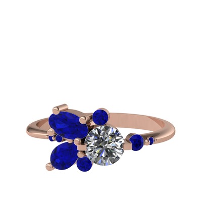 Pırlanta ve lab safir 925 ayar rose altın kaplama gümüş yüzük (0.5 karat)
