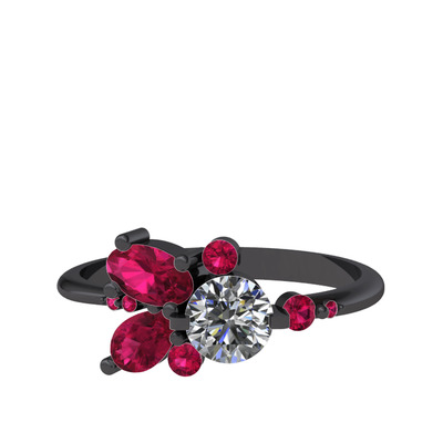 Pırlanta ve rodolit garnet 925 ayar siyah rodyum kaplama gümüş yüzük (0.5 karat)