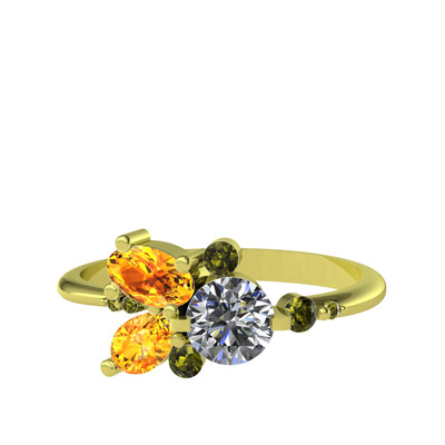 Pırlanta, sitrin ve peridot 14 ayar altın yüzük (0.5 karat)
