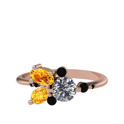 Pırlanta, sitrin ve siyah zirkon 925 ayar rose altın kaplama gümüş yüzük (0.5 karat)