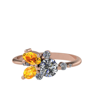 Pırlanta, sitrin ve swarovski 925 ayar rose altın kaplama gümüş yüzük (0.5 karat)