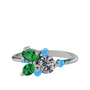 Pırlanta, yeşil kuvars ve akuamarin 925 ayar gümüş yüzük (0.5 karat)