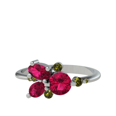 Rodolit garnet ve peridot 14 ayar beyaz altın yüzük