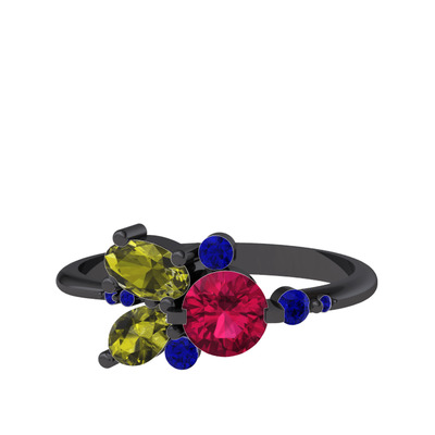 Rodolit garnet, peridot ve lab safir 925 ayar siyah rodyum kaplama gümüş yüzük