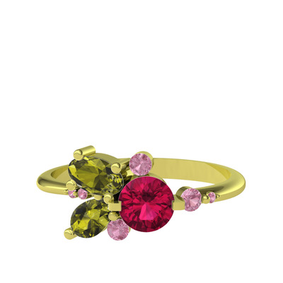 Rodolit garnet, peridot ve pembe kuvars 18 ayar altın yüzük