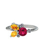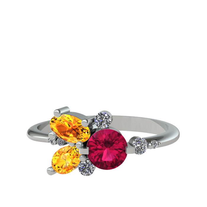 Rodolit garnet, sitrin ve beyaz zirkon 8 ayar beyaz altın yüzük