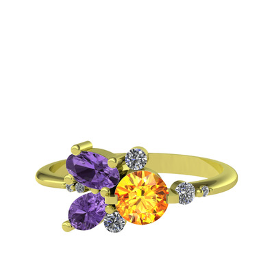 Sitrin, ametist ve beyaz zirkon 8 ayar altın yüzük