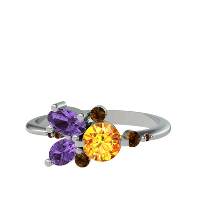 Sitrin, ametist ve dumanlı kuvars 8 ayar beyaz altın yüzük