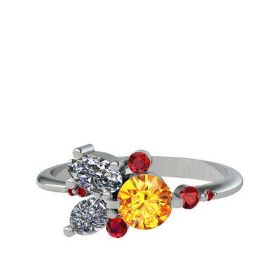 Sitrin, beyaz zirkon ve garnet 18 ayar beyaz altın yüzük