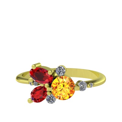 Sitrin, garnet ve beyaz zirkon 925 ayar altın kaplama gümüş yüzük