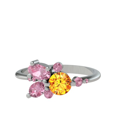 Sitrin ve pembe kuvars 18 ayar beyaz altın yüzük