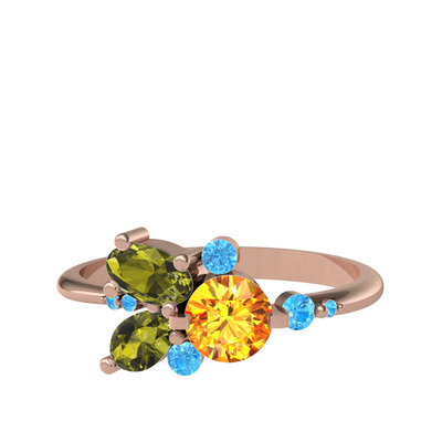Sitrin, peridot ve akuamarin 18 ayar rose altın yüzük