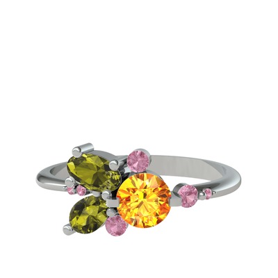 Sitrin, peridot ve pembe kuvars 18 ayar beyaz altın yüzük