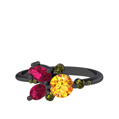 Sitrin, rodolit garnet ve peridot 925 ayar siyah rodyum kaplama gümüş yüzük