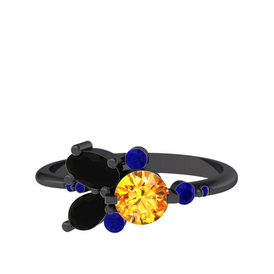Sitrin, siyah zirkon ve lab safir 925 ayar siyah rodyum kaplama gümüş yüzük