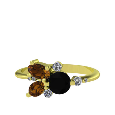 Siyah zirkon, dumanlı kuvars ve beyaz zirkon 14 ayar altın yüzük