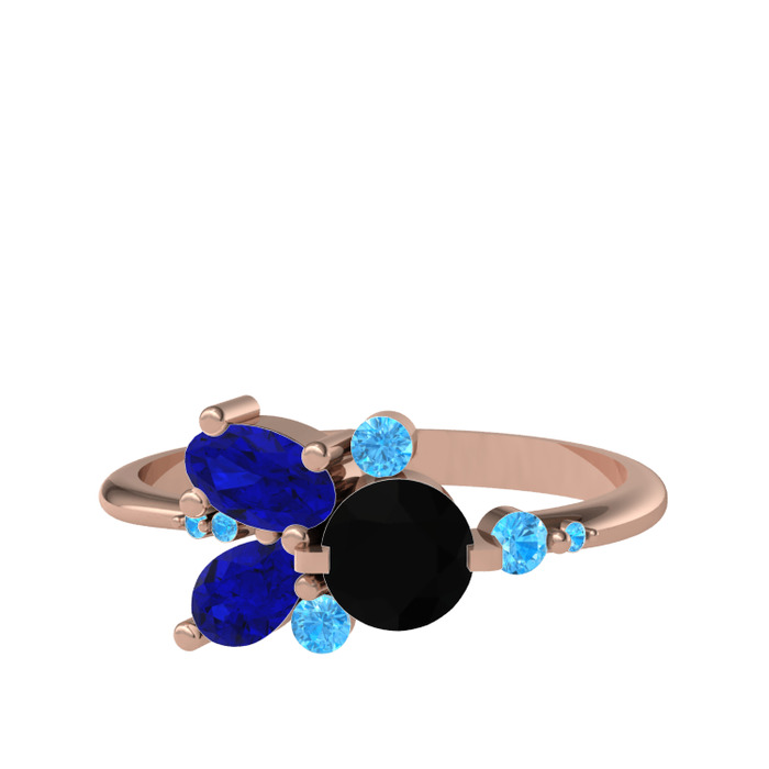 Siyah zirkon, lab safir ve akuamarin 14 ayar rose altın yüzük