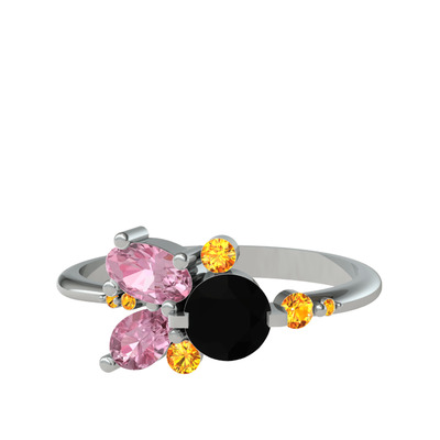 Siyah zirkon, pembe kuvars ve sitrin 925 ayar gümüş yüzük