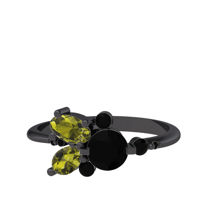 Siyah zirkon ve peridot 925 ayar siyah rodyum kaplama gümüş yüzük