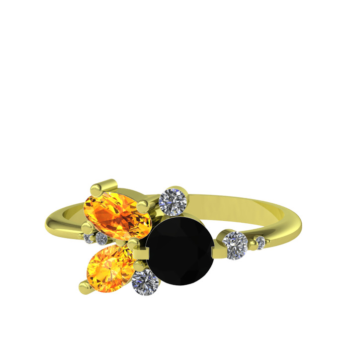 Siyah zirkon, sitrin ve beyaz zirkon 925 ayar altın kaplama gümüş yüzük