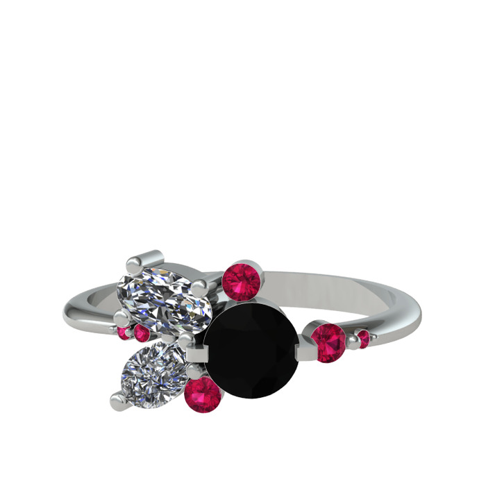 Siyah zirkon, swarovski ve rodolit garnet 18 ayar beyaz altın yüzük