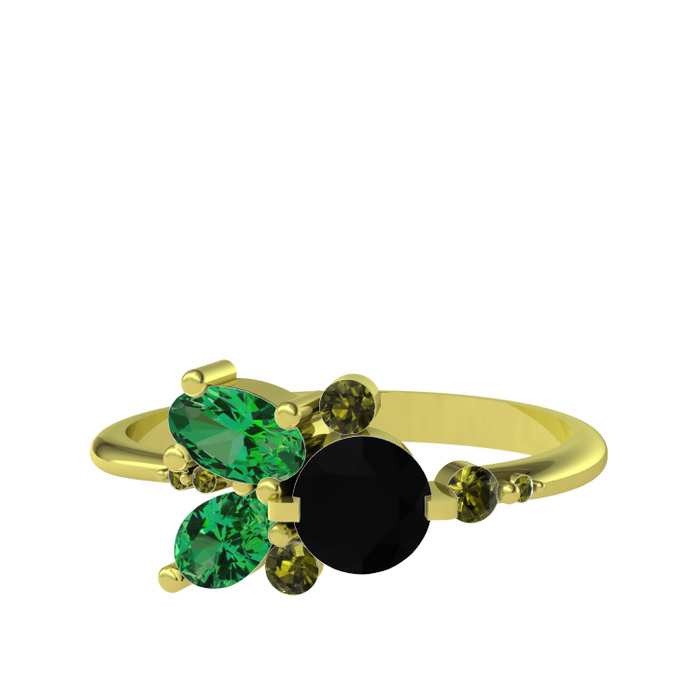 Siyah zirkon, yeşil kuvars ve peridot 8 ayar altın yüzük