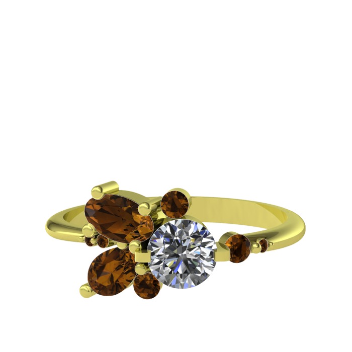 Swarovski ve dumanlı kuvars 14 ayar altın yüzük