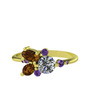 Swarovski, dumanlı kuvars ve ametist 18 ayar altın yüzük