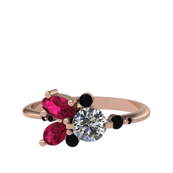 Swarovski, rodolit garnet ve siyah zirkon 925 ayar rose altın kaplama gümüş yüzük