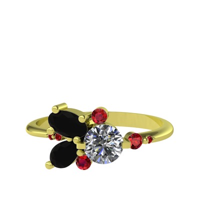 Swarovski, siyah zirkon ve garnet 8 ayar altın yüzük