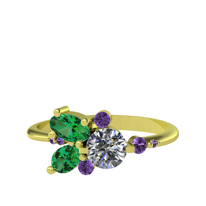 Swarovski, yeşil kuvars ve ametist 14 ayar altın yüzük