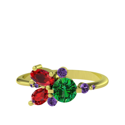 Yeşil kuvars, garnet ve ametist 8 ayar altın yüzük