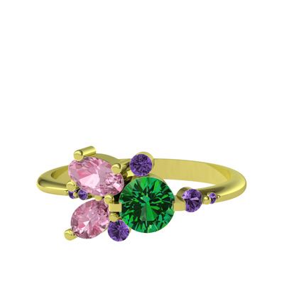 Yeşil kuvars, pembe kuvars ve ametist 8 ayar altın yüzük