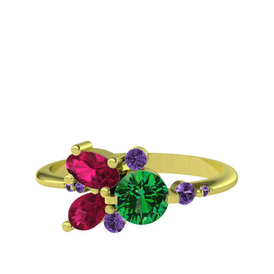 Yeşil kuvars, rodolit garnet ve ametist 8 ayar altın yüzük