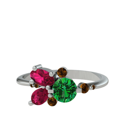 Yeşil kuvars, rodolit garnet ve dumanlı kuvars 14 ayar beyaz altın yüzük