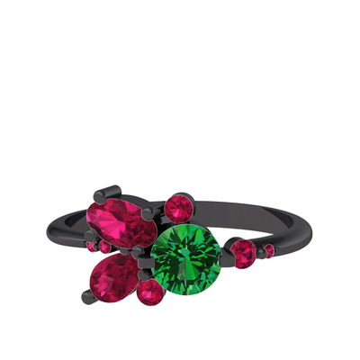 Yeşil kuvars ve rodolit garnet 925 ayar siyah rodyum kaplama gümüş yüzük