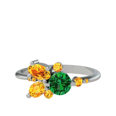 Yeşil kuvars ve sitrin 18 ayar beyaz altın yüzük