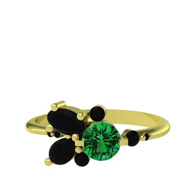 Yeşil kuvars ve siyah zirkon 18 ayar altın yüzük