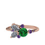 Yeşil kuvars, swarovski ve ametist 925 ayar rose altın kaplama gümüş yüzük