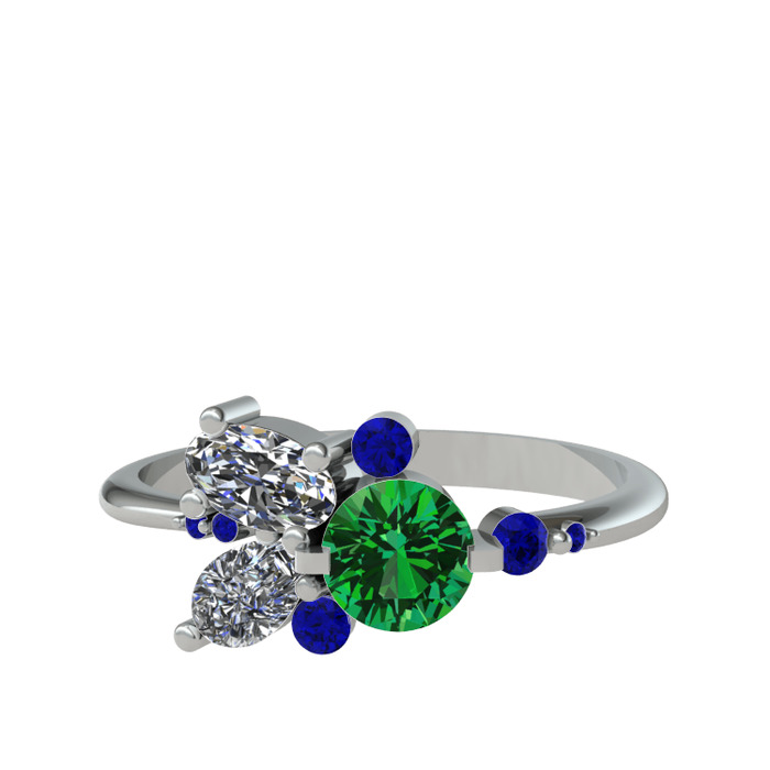 Yeşil kuvars, swarovski ve lab safir 8 ayar beyaz altın yüzük