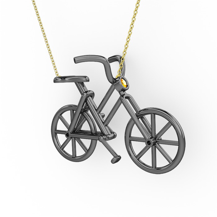 Sitrin 925 ayar siyah rodyum kaplama gümüş kolye (40 cm altın rolo zincir)